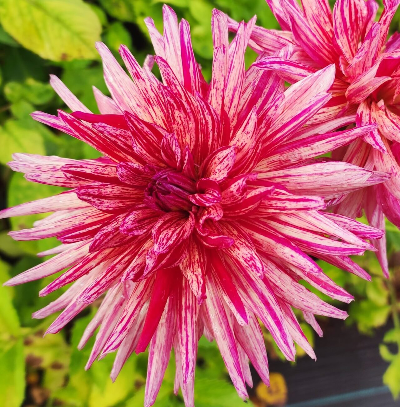 Named after a French marathoner, this striking semi-cactus dahlia excels in borders or beds. Light pink spiked blooms, accented with bold red flecks and stripes, make a stunning display. Their 5½” size is perfect for unique arrangements, and when grown in groups, they attract attention from midsummer until the first fall frost.