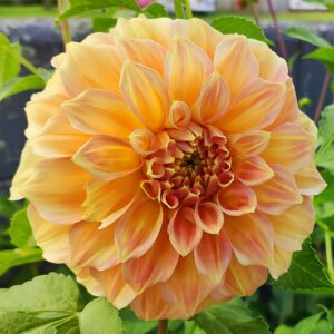 Dahlia ‘Bracken Sarah’ is a stunning small decorative variety known for its beautiful golden yellow-apricot toned flowers. This medium-sized dahlia, bred by Neville Naumann from Bracken Ridge in Queensland, features glowing 6 to 8-inch blooms with a soft yellow base color accented by peach highlights. The flowers sit atop tall, strong stems, making them perfect for cut flower arrangements. Although ‘Bracken Sarah’ blooms later than most dahlias, its impressive plant stature, bright coloring, and exquisite petal arrangement make it a show stopping addition to any garden.