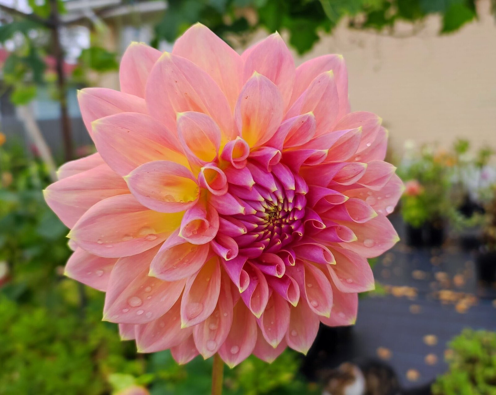 Bright blush flowers that seem to belong in a faraway castle due to their enchanting beauty, Castle Drive is a medium-sized ball variety with soft blush-pink petals highlighted by yellow accents and a slightly purple center. These flowers have a medium plant stature with light green foliage. The remarkable beauty of this variety makes these dahlias a must-have for any arrangement.