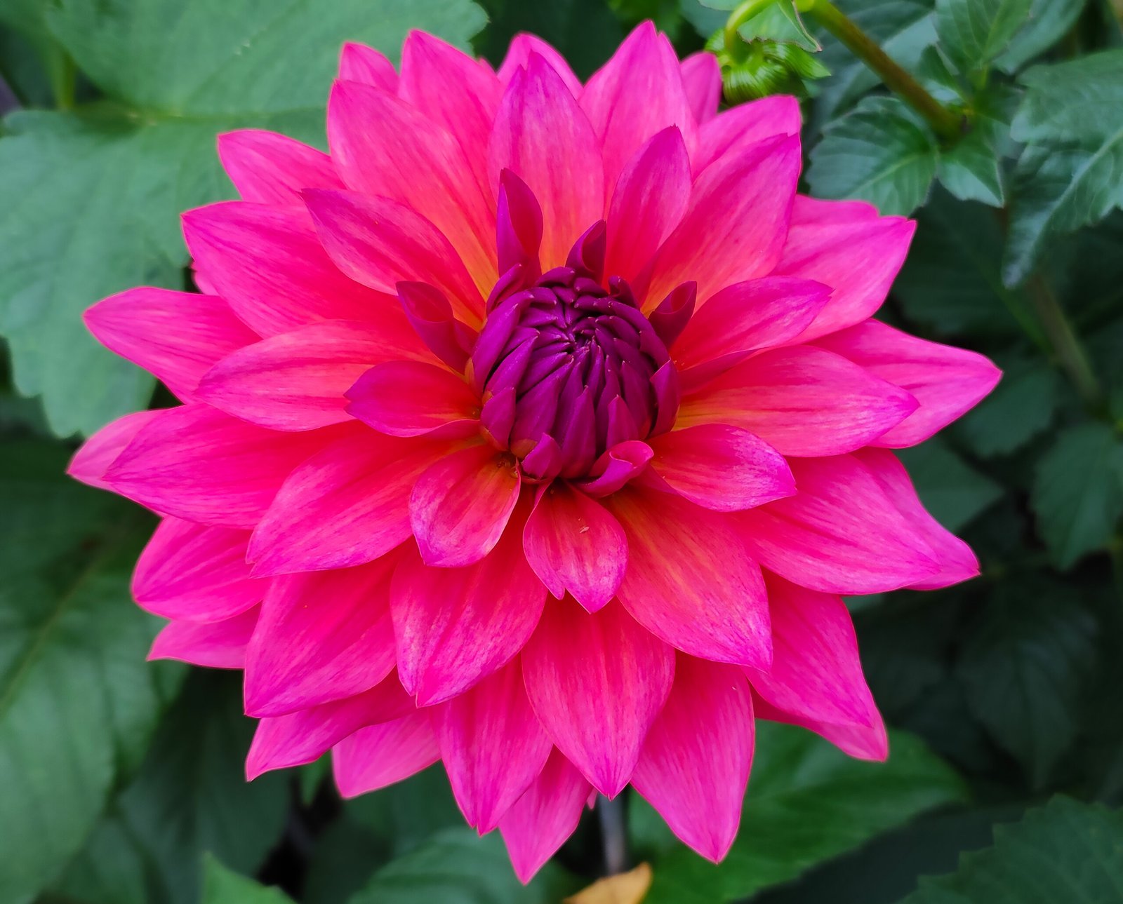 Feline Yvonne is a captivating variety with large, vibrant blooms, around 12 cm across, showcase stunning shades of vivid pink blended beautifully with rich plum-purple and berry tones, sometimes displaying hints of rust. These flowers are strikingly set against attractive dark, nearly black stems and lush foliage, making an immediate visual impact.