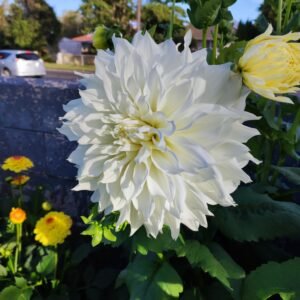 Fleurel is a classic dinnerplate variety admired for its spectacular, pure white blooms. These large, fully double flowers can grow over 25 cm across, with gently twisting petals that give each blossom a delicate, frilly appearance. Ivory-tinted bases and creamy yellow centers add subtle depth and a soft, sunny glow. Blooming prolifically from midsummer until frost, ‘Fleurel’ reaches 36–48 inches (90–120 cm) tall and produces an abundance of long-stemmed flowers ideal for luxurious bouquets. Its striking elegance and timeless beauty make it a favorite choice for late summer and fall weddings, as well as a standout in sunny garden beds and borders.