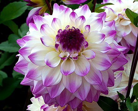 If you’re seeking midsummer landscapes that captivate with large, elegant blooms in soft hues, lasting until the first frosts of fall, Hapet Blue Eyes is the perfect choice. This chic new Dinnerplate Dahlia offers a decorative touch with its impressive 8-inch, fully double white flowers, each petal delicately accented with a hint of lilac at the tips.