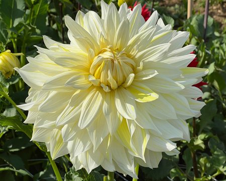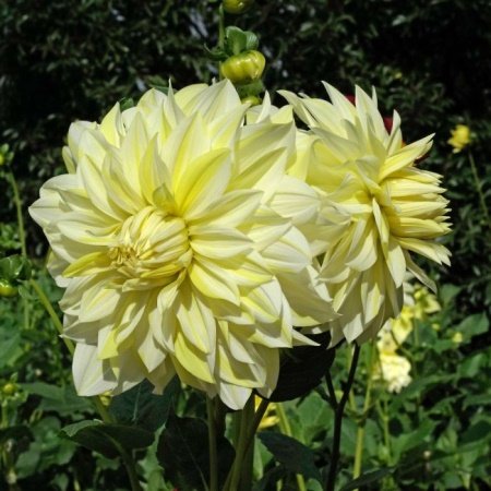 Dahlia ‘La Luna’ earned its name for good reason: its 10-inch fully double, huge blooms in soft shades of pale yellow and white radiate a glow reminiscent of the moon. These generously sized flowers, with their Informal Decorative form, sometimes adorned with delicate golden stripes, create stunning focal points in garden borders and make an impressive statement in large-scale floral arrangements. Their luminous appearance ensures that ‘La Luna’ brings a touch of celestial beauty to any garden or bouquet.