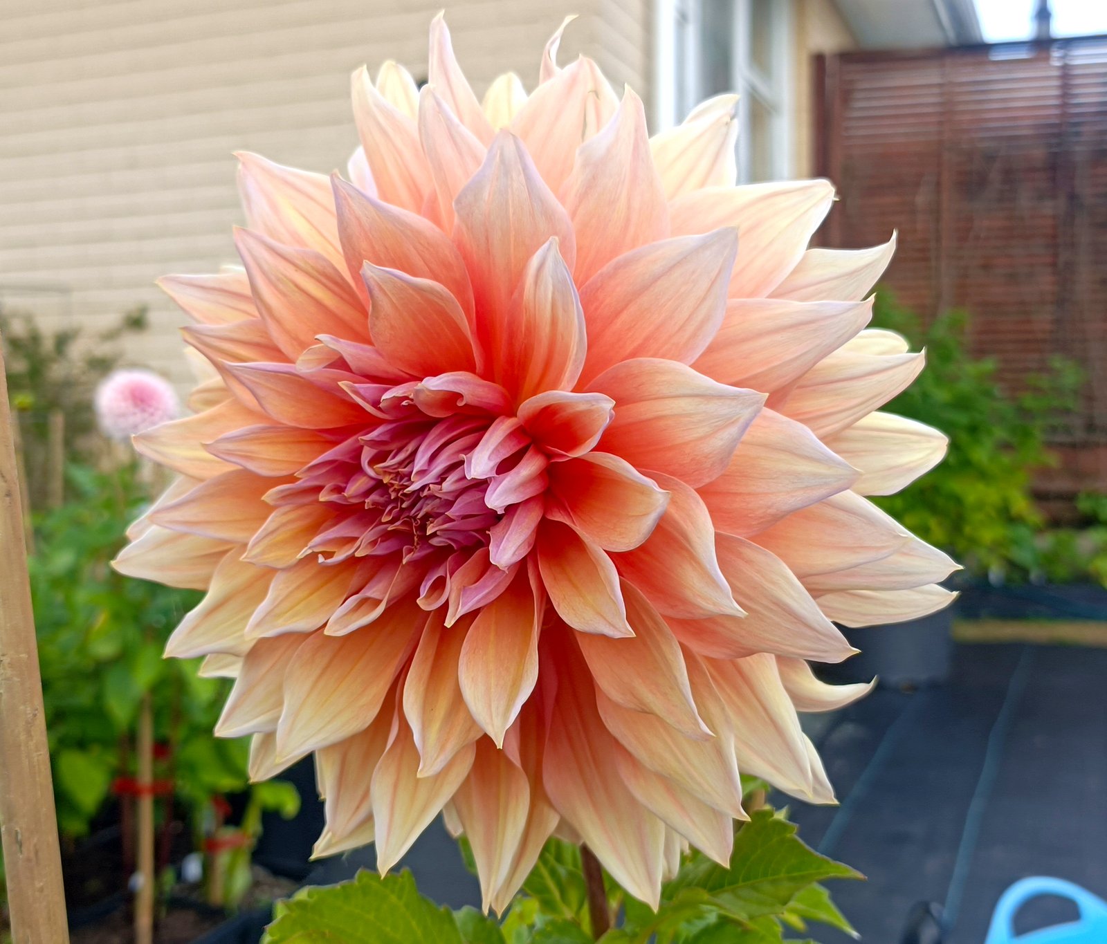 Dahlia ‘Mango Madness’ truly lives up to its vibrant name, offering a wonderfully exotic and playful presence in the garden. This stunning dinnerplate dahlia boasts fancy blooms with a captivating mix of orange, golden, and pink undertones, creating a dazzling display of color. Beyond its striking flowers, ‘Mango Madness’ is celebrated for its excellent garden performance, featuring a compact growth habit, dark stems, and beautifully wavy leaves. This combination of eye-catching blooms and robust, attractive foliage makes ‘Mango Madness’ a must-have for any garden looking to add a touch of tropical flair.