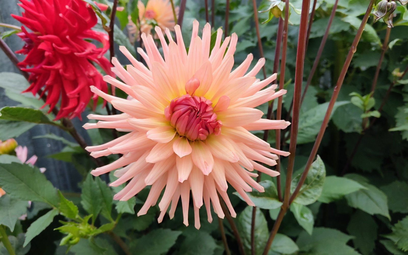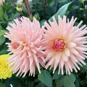 Preference is a breathtaking semi-cactus variety with soft peachy-pink blooms that fade to creamy tips, creating a luminous, shimmering effect in the sunlight. Flowers measure 4–6 inches (10–15 cm) across and are held high on strong, upright stems—even in rain—making them as reliable as they are beautiful.