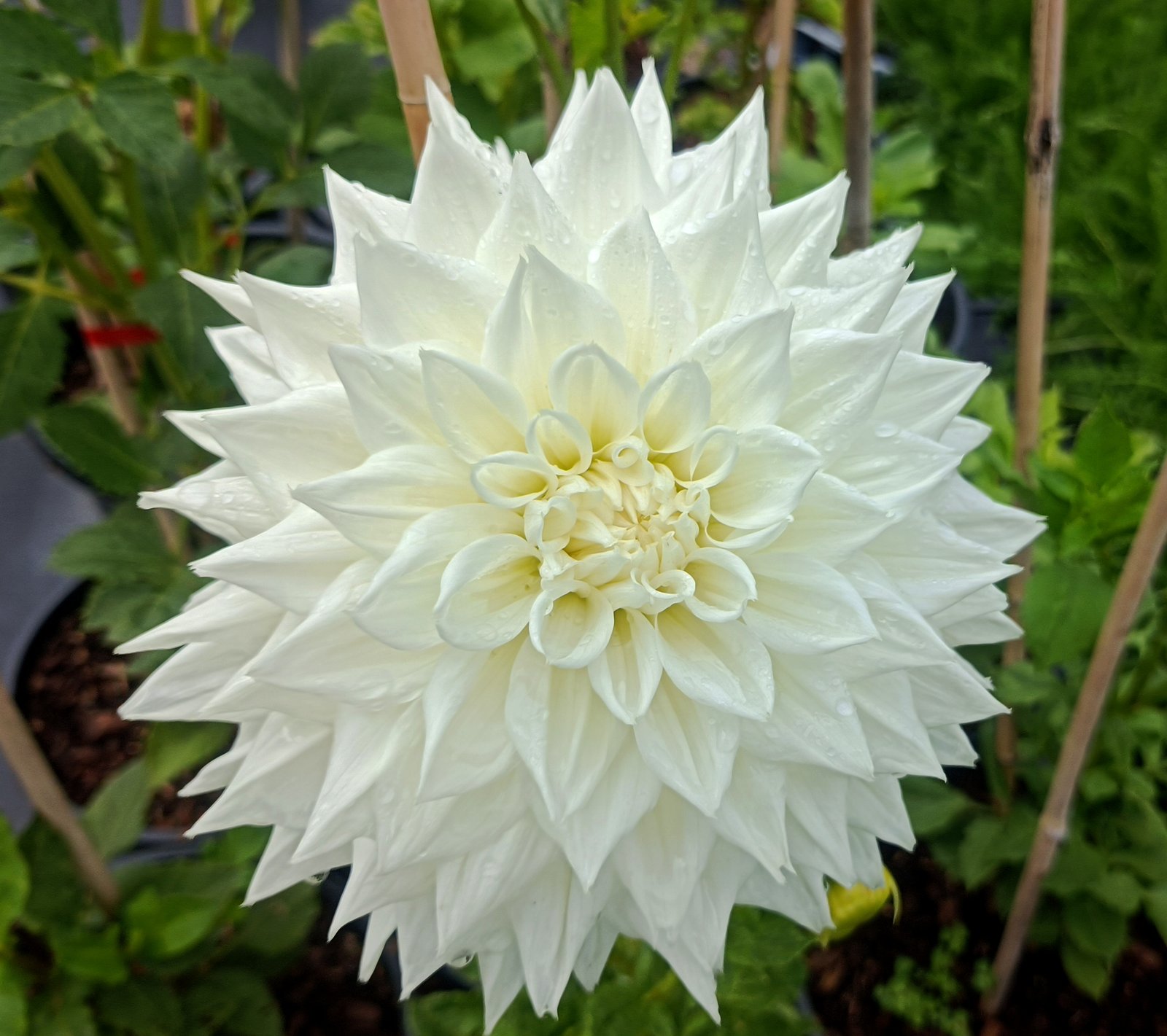 Ryecroft Ice is a large informal Decorative dahlia, admired for its beautiful white glossy petals and exceptionally uniform petal structure. The blooms are held elegantly on strong stems, ensuring they stand out in any garden. Notably, Ryecroft Ice produces a higher flower count than most large dahlias, making it an excellent choice for those looking to add both quantity and quality to their floral displays. This variety’s striking appearance and prolific blooming make it a fantastic addition to any garden.