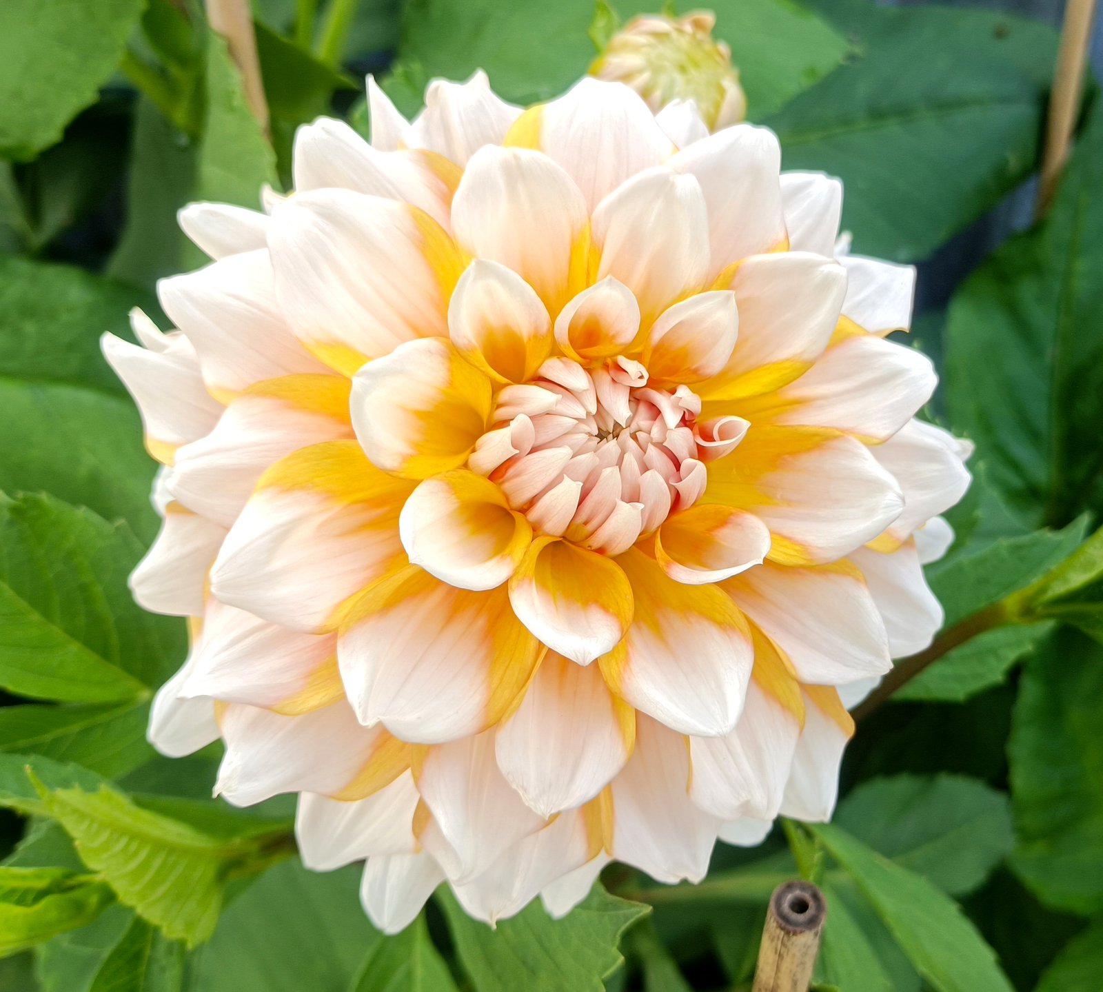 Dahlia ‘Seattle’ is a dazzling Medium Decorative Dahlia known for its large, brilliant golden-yellow flowers accented with striking white tips. These stunning blooms, reminiscent of golden candy corn, can reach 6-8 inches (15-20 cm) in width, making them a showstopper in any garden. Sitting atop tall, strong stems, ‘Seattle’ adds a cheerful and vibrant twist to both garden landscapes and floral bouquets. With its soft, rounded florets and eye-catching bicolor pattern, this variety brings a ray of sunshine and warmth wherever it is planted. Easy to grow and maintain, ‘Seattle’ is a rewarding addition to any garden, providing a spectacular display with minimal effort. Perfect as a cut flower, it adds a delightful and happy touch to any arrangement.