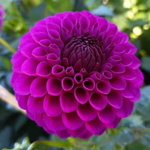 Twilight Boy, A showstopper in deep jewel tones, ‘Twilight Boy’ dazzles with its rich royal purple blooms, glowing with a vivid magenta hue that remains intense in all lighting. Each perfectly shaped 3″ ball bloom features flawlessly arranged petals that spiral tightly to form a stunning, symmetrical flowerhead—ideal for both exhibition and garden admiration.