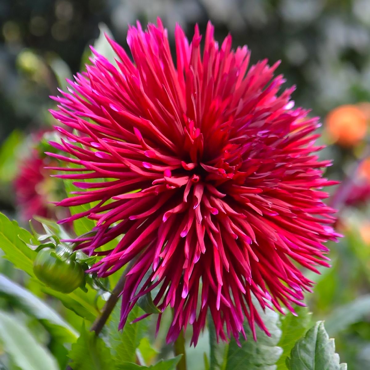 The 4–6″ blooms glow in a deep raspberry red with subtle purple tinges on the tips of the petals, especially visible when viewed up close. With its wild, sculptural look and intense color, ‘Urchin’ is both a conversation starter in the border and a standout on the show bench. Whether you see it as a lacy starburst or a vibrant sea creature in bloom, it’s undeniably a showstopper.
